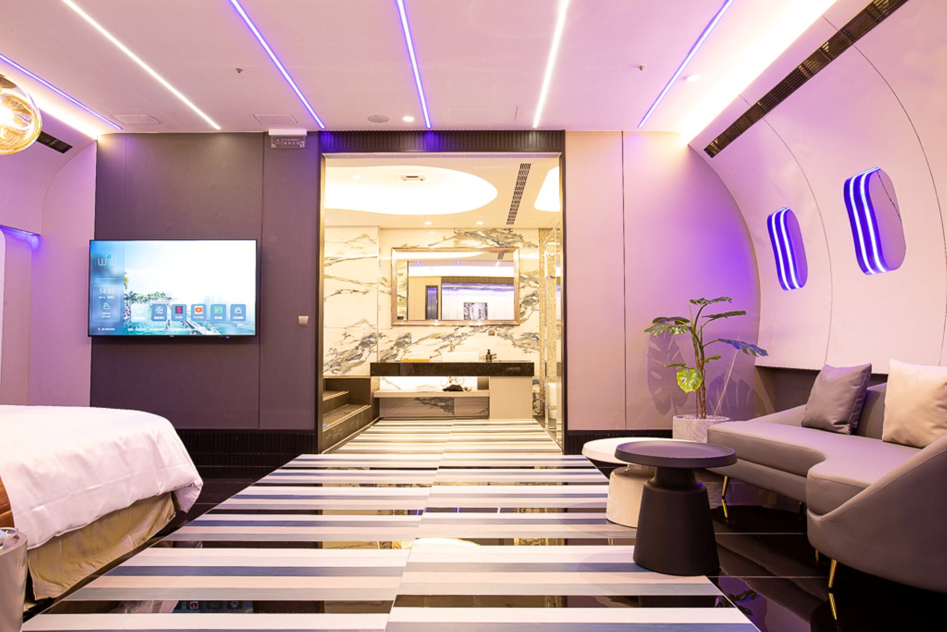 雙人氣泡浴缸/Mini吧/吋電視/無壓縮機冰箱/Wifi無線上網/反針孔偷拍偵測系統